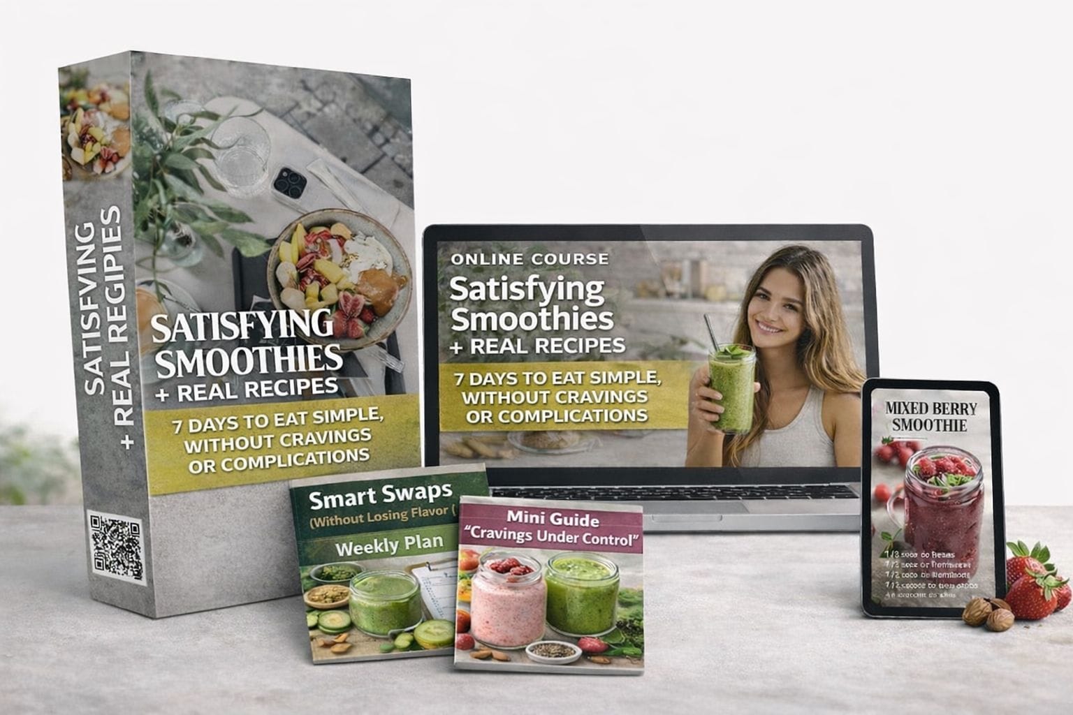 Get 12 filling smoothies, simple everyday recipes and a 7-day plan to finally stop asking “What do I eat today?” using normal ingredients and quick, easy steps.